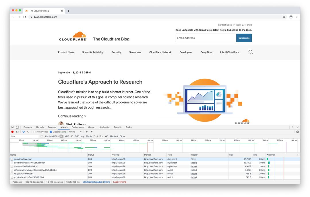 现在我们很高兴地宣布,Cloudflare 边缘网络已提供 QUIC 和 HTTP/3 支持。我们很高兴能与两家领先的浏览器供应商和合作伙伴谷歌 Chrome 和 Mozilla Firefox 共同合作完成这项工作,为所有人打造速度更快、更加可靠的互联网。