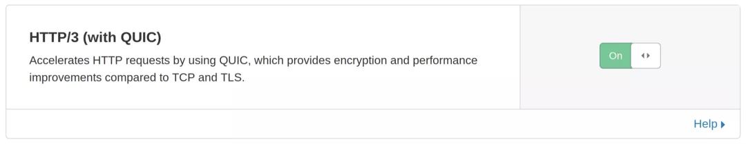 这对 Cloudflare 的客户又意味着什么呢?你们选择我们的服务和边缘网络,是为了让 Web 更快、更安全。在 Cloudflare 仪表板为你的域启用 HTTP/3 支持后,你的客户就可以使用 HTTP/3 与你的网站和 API 交互。我们一直在邀请 HTTP/3 等候队列中的客户启用该功能,在接下来的几周内我们将向所有人开放该功能。