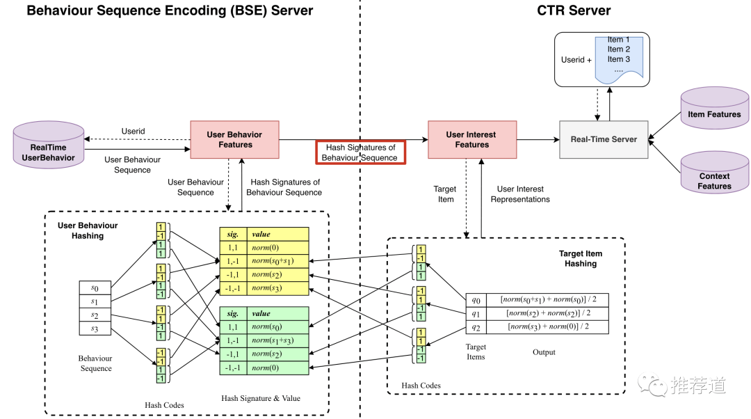 但是重新走target attention的老路,让target item与每个historical item逐一点积,前面已经说有了,性能上吃不消,那是死路一条。我们只能另辟蹊径,这时SimHash给我们指明了一条新路。