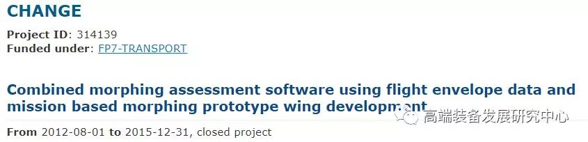 欧盟的CHANGE项目(联合变形软件使用飞行包络数据和基于任务的变形原型机翼开发)的研究目标是获得一种可以在起降高升力阶段增加弯度、高速飞行状态减小翼展、空中待命阶段增加翼展并减小弯度的技术。