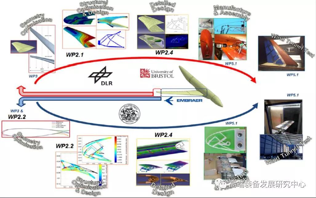 可见,DLR针对变形机翼相关的研究,从初始内部项目到欧洲跨学科团队合作项目,对不同原理的变形方案进行而来试验和验证,获得了一系列的研究成果。为未来民机的智能变形结构实现提供有力的技术支撑。