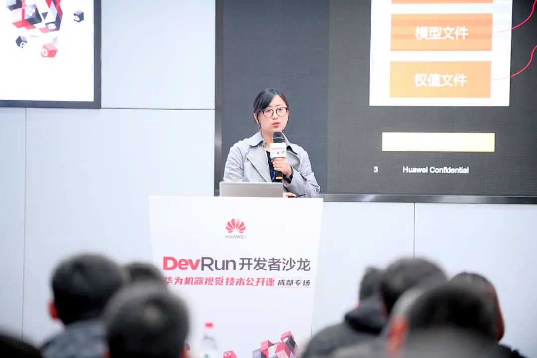 11 月 28 日,华为机器视觉与 InfoQ 联合举办的 DevRun 开发者沙龙 华为机器视觉技术公开课 - 成都专场,在成都人才综合服务中心·逐梦厅成功举办。活动现场,华为机器视觉多位资深技术专家从实践出发,就摄像机 App 开发、摄像机 AI 模型转换与精度分析、摄像机 AI 模型部署与推理等几个维度展开深度分享,为现场开发者们解读更多算法开发实践以及软件定义摄像机的特点和功能。除了精彩的主题分享外,华为机器视觉的各位专家还与参会者一同进行了在线实操。
