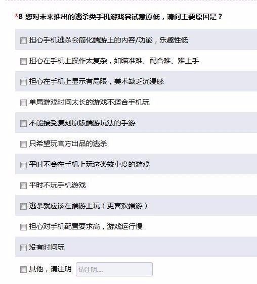 然后直接询问玩家对于大逃杀类手游的态度,对于不感兴趣的玩家询问了理由。还提供了游戏图标和宣传语的评选,征询吸引你的原因。