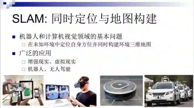 SLAM英文全名Simultaneous Localization and Mapping,翻译为同时定位与地图构建,主要解决在未知环境中,如何进行自身方位的定位,并同时构建三维环境的地图。它是机器人和计算机视觉领域的一个基本问题,有非常广泛的应用,比如可以应用于增强现实、虚拟现实、机器人和无人驾驶等领域。基本上,需要定位和三维感知的应用都需要用到SLAM技术。