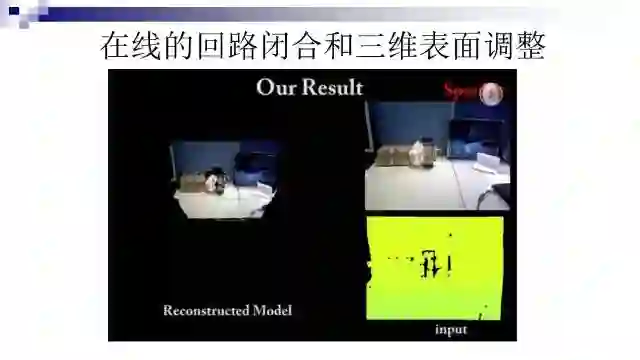 我们的方法可以进行在线的回路闭合和稠密的三维表面实时调整。
