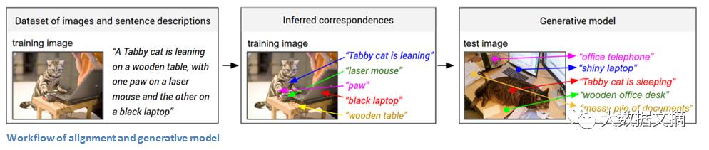 这很不可思议!我们来看看这与正常的CNN相比如何。 对于传统的CNN,训练数据中每个图像都有一个明确的标签。 本论文中所描述的模型,其每个训练实例都具有一个与各个图像相关联的句子或标题 。 这种类型的标签被称为弱标签,其中句子的成分指的是图像的(未知)部分。 使用这个训练数据,一个深度神经网络“推断出句子的各个部分和他们描述的区域之间的潜在对应”(引自论文)。 另一个神经网络将图像作为输入,并生成文本描述。 让我们来看看这两个组件:对准和生成。