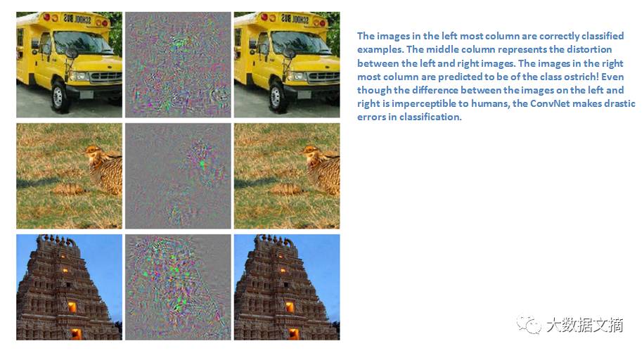 据Yann LeCun介绍,这些网络可能是下一个大发展。 在谈论这篇文章之前,让我们谈谈一些对抗范例。 例如,让我们考虑一个在ImageNet数据上运行良好的CNN。 我们先来看一个示例图,再用一个干扰或一个微小的修改使预测误差最大化,预测的对象类别结果因此而改变,尽管扰动后的图像相比愿图像本身看起来相同。 从高层视野 来看,对抗组示例基本上是愚弄ConvNets的图像。