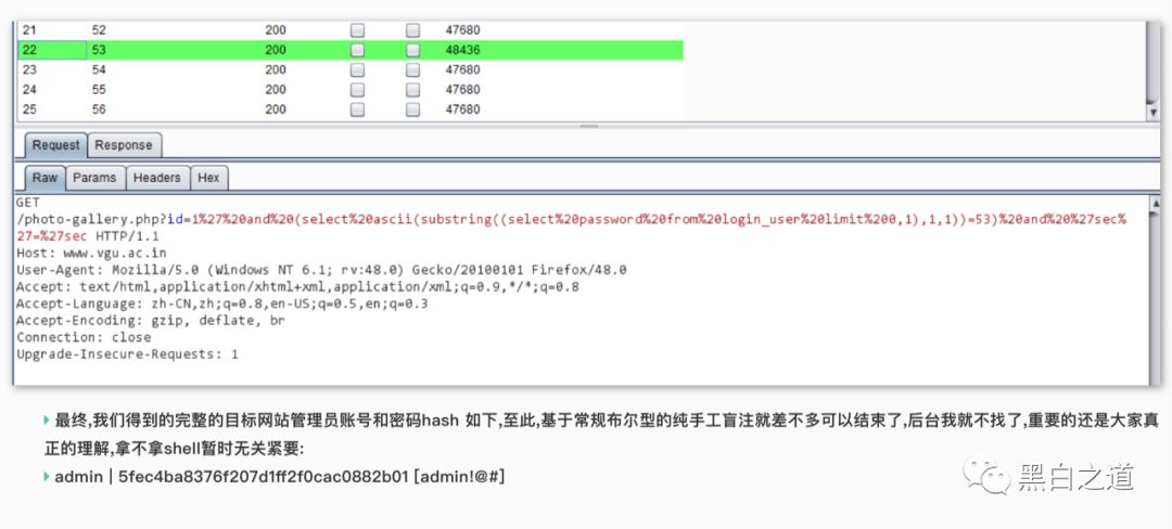 盲注通常都是专门为了对付目标页面错误处理的比较好的这种情况,也就是说,有时即使目标存在注入,因为在页面上没有任何回显,此时再想利用常规的 union 曝数据字段可能就不大现实了,于是后来就被人发现了盲注这种技巧,关于盲注的常用类型,主要有三种,基于时间,布尔,错误[实际遇到的非常少]的盲注,不过我们今天暂时只针对布尔型盲注做详细说明,关于其它的技巧,后续还会再单独说明,其实,也算不上什么很高级的技巧,都是一些很基础的堆砌,废话不多说,最好的办法还是直接通过实战来透彻理解盲注。