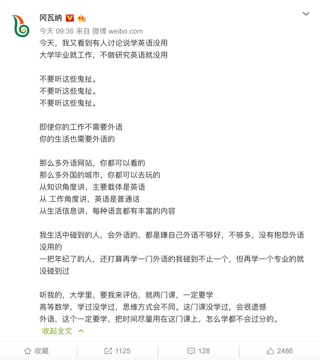 关于如何学习自然语言处理,如何入门NLP,无论在博客、微博还是AINLP公众号以及技术交流群里,这是个经久不衰的问题。之前开玩笑的建议过:学好英语、打好数学和计算机科学的基础,然后再了解一点语言学,这个问题就简单了。今天,刚好看到一条微博,关于“为什么要学习英语”: