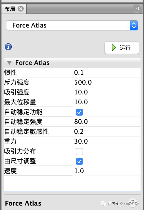 Force Atlas 为力引导布局,力引导布局方法能够产生相当优美的网络布局,并充分展现网络的整体结构及其自同构特征。力引导布局即模仿物理世界的引力和斥力,自动布局直到力平衡。