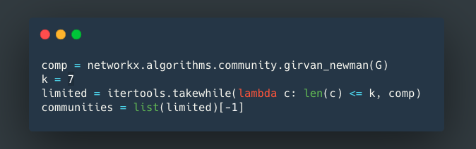 我们使用 NetworkX [3] 内置的社区发现算法 Girvan-Newman 来为我们的图网络划分社区。