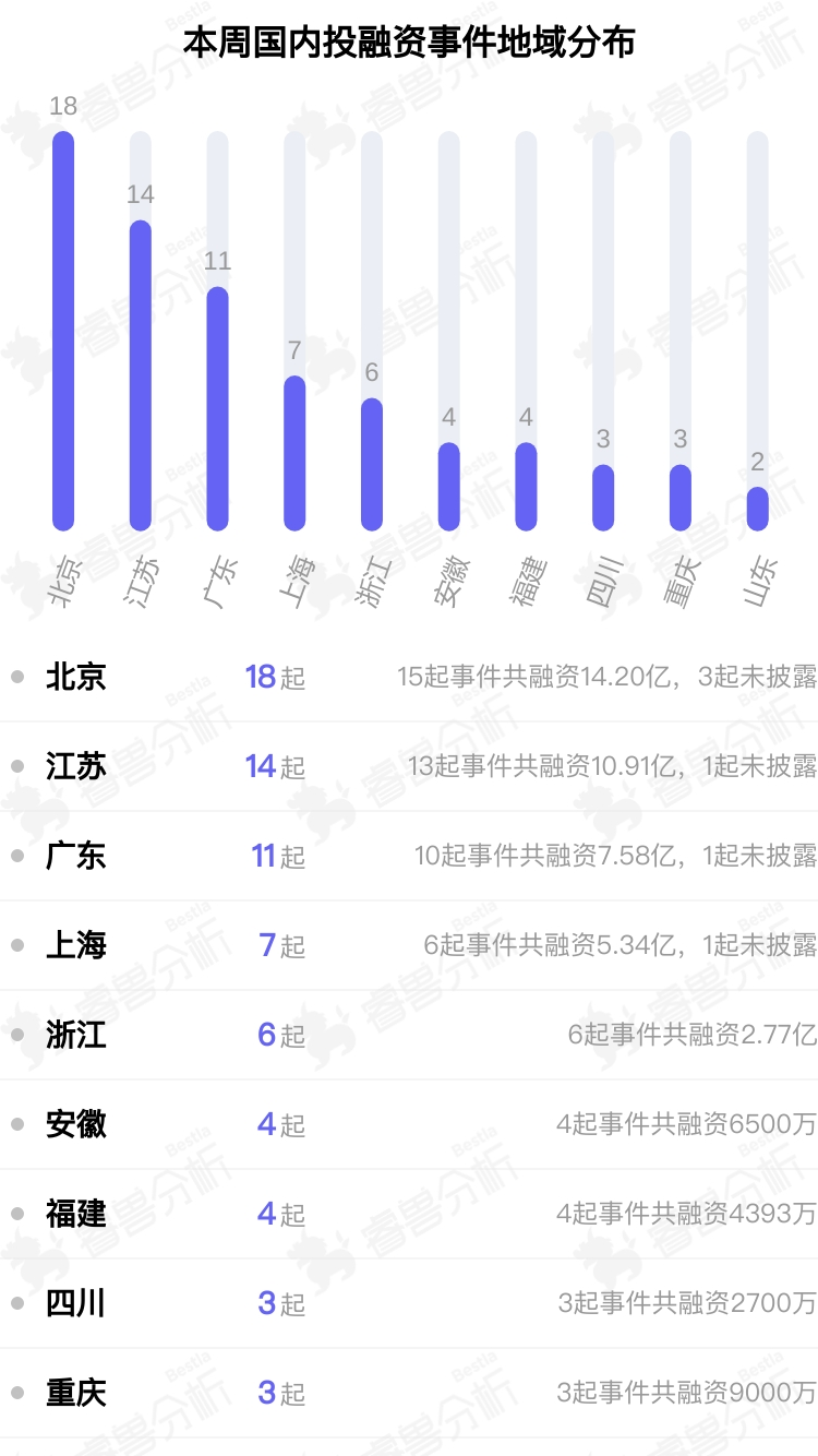 从参与投资的项目数来看,其中红杉中国投资4起,经纬创投投资4起,启明创投投资3起。