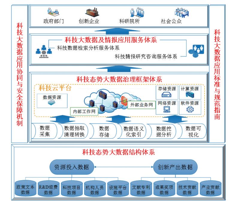 2)建设科技态势大数据及情报应用服务云平台,对内建立完善的科技数据与情报成果管理和共享机制;对外提供科技态势大数据多维检索与分析,以及情报研究咨询定制服务,提高科技大数据及情报应用服务的便利性、规范性和权威性。