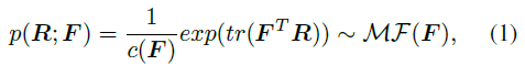 首先,SO (3) 上的 matrix Fisher 分布 MF (⋅) 可作为关节旋转 R 的先验分布,如下式所示,F∈R^(3×3) 是该分布的参数,c (F) 是一个归一化常量,tr 表示矩阵的迹。