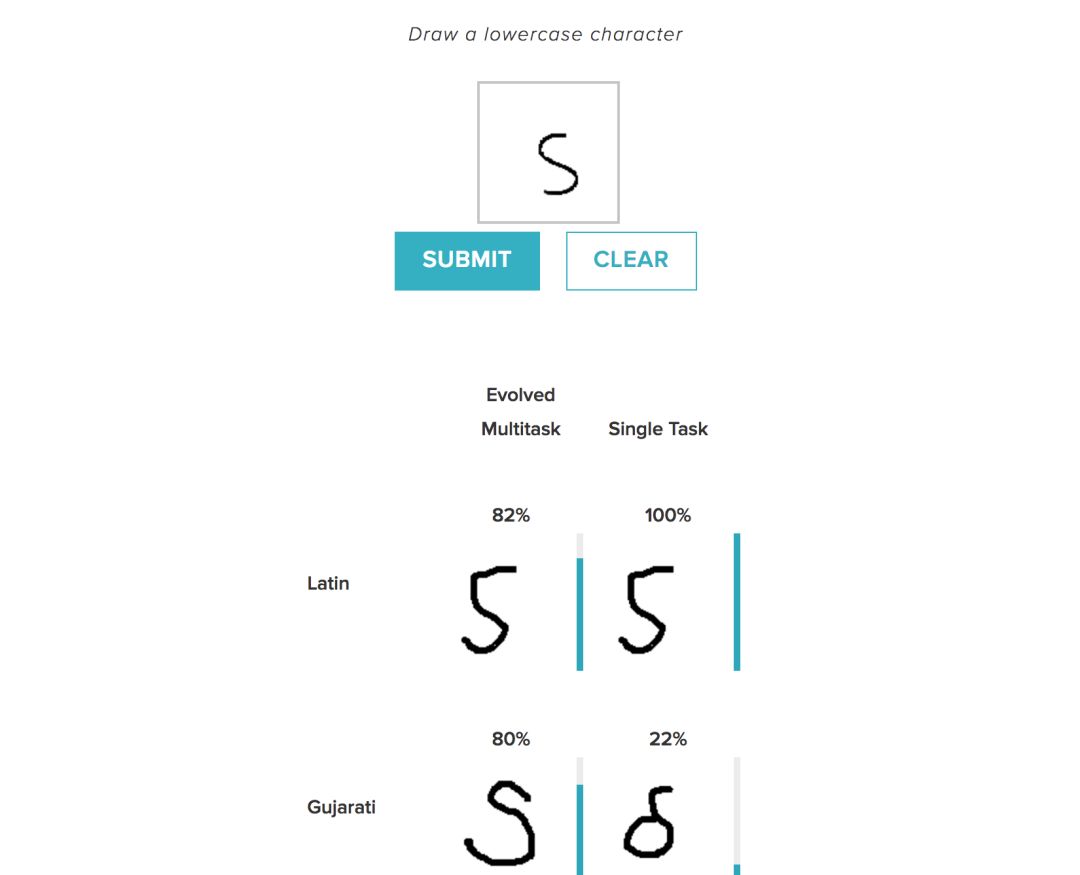 上图示例展示了多任务学习,模型可以同时学习所有语言,并利用不同语言中字符之间的关系。例如,用户输入图像,系统根据匹配输出不同语言的含义,“这将是拉丁语中的X,日语中的Y以及Tengwar中的Z等等”——利用日本、Tengwar和拉丁语之间的关系找出哪些角色是最好的匹配。这与单一任务学习环境不同,单一环境下模型只对一种语言进行训练,并且不能在语言数据集上建立相同的连接。