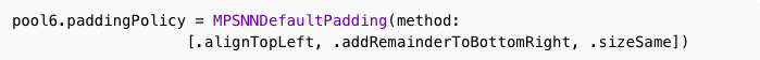 这个pool6层与其他池层不同,因为它使用stride 1而不是stride 2.因此它需要不同类型的填充(padding)。要更改层的填充方式,需要paddingPolicy在节点上设置属性。像这样: