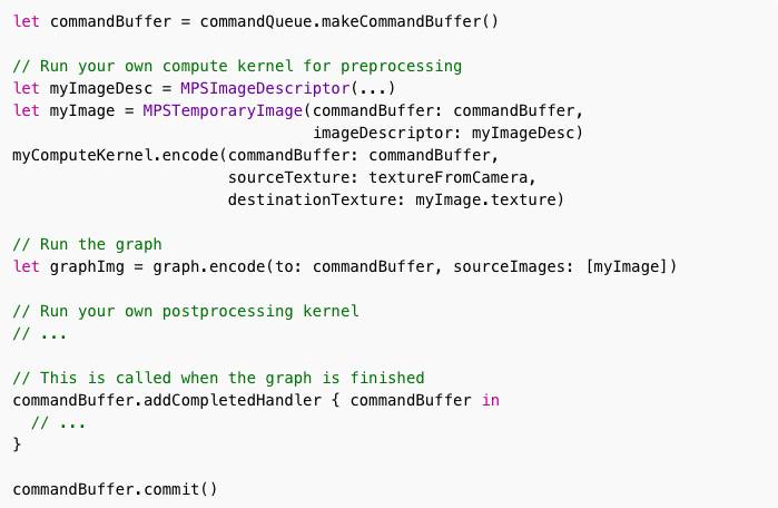 两种API之间的巨大区别在于易用性。使用Core ML,可以很容易让model上线。而MPSNNGraph复杂一些,你需要更多地了解模型的内部。但是,与“老式”MPS相比,这两者使用起来都容易得多。