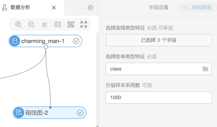 拖拽统计分析-箱线图。如图所示,选择观测的特征。