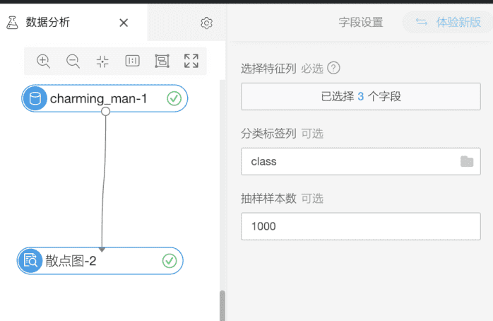 拖拽统计分析-散点图。如图所示,选择观测的特征。