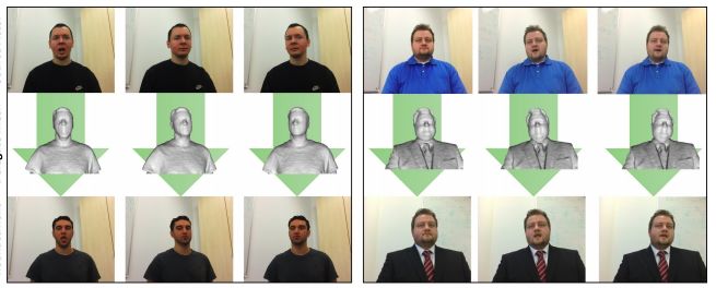 研究团队去年在Face2Face上所做的工作为HeadOn的大部分能力提供了框架,但Face2Face只能实现面部表情的转换,HeadOn增加了身体运动和头部运动的迁移。