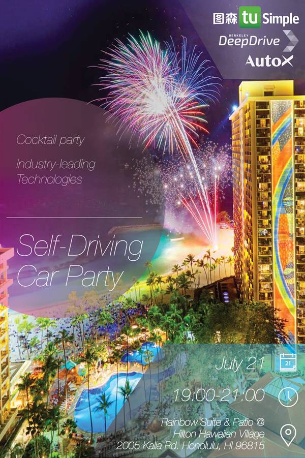 想象一下,在夏威夷海滩的夏夜里,吹着海风(预计比帝都凉爽不止一点点),听着音乐,享用着美食与美酒,放松下疲惫的身心,丢弃掉令人心累的客套,在轻松愉悦的氛围当中,与三家自动驾驶领域的企业或科研机构的技术大牛们随意交谈、自由交流……