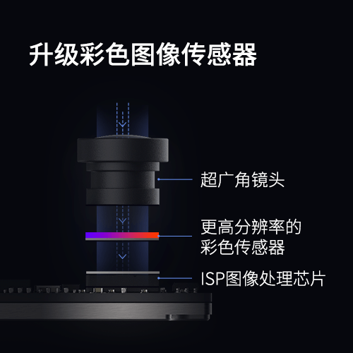 此外,标准彩色版新增ISP (Image Signal Processor)图像处理芯片,使其可以在室内外不同光学条件下更好地还原现场细节,对图像进行自动曝光控制、自动白平衡、线性纠正、噪声坏点去除等处理,从而为彩色物体的识别和避障提供更为精确和稳定的图像源。