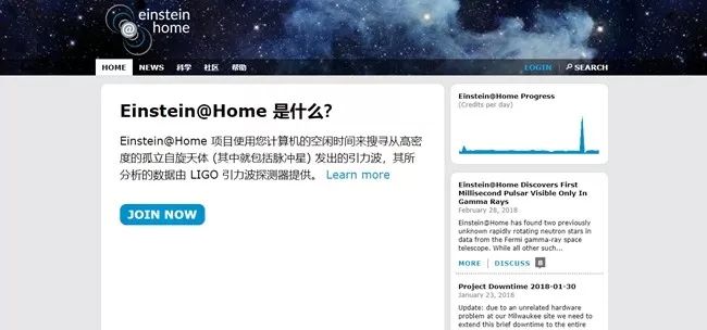 Einstein@Home项目通过使用你计算机的闲置能力,来搜寻从高密度的孤立自旋天体(其中就包括脉冲星)发出的引力波,其所分析的数据由LIGO引力波探测器提供。