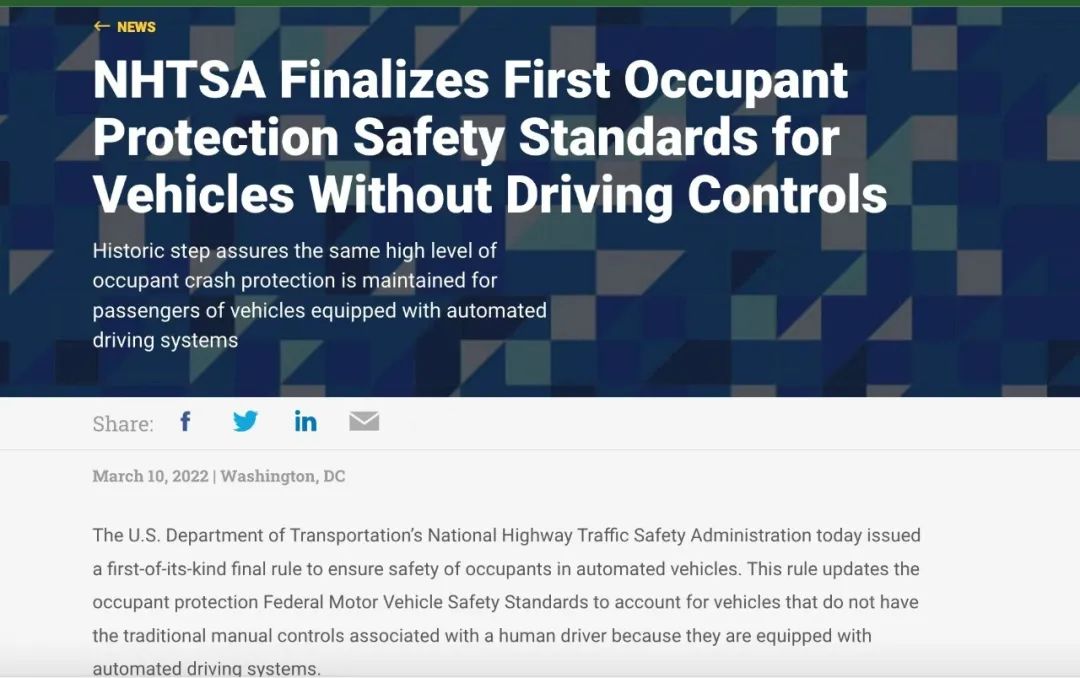 查看完整版新规:https://www.nhtsa.gov/sites/nhtsa.gov/files/2022-03/Final-Rule-Occupant-Protection-Amendment-Automated-Vehicles.pdf