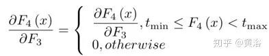 这里W4 = {W4}包含一个大小为n3×f4×f4的滤波器,B4 = {B4}包含一个偏差,tmin, max是BReLU的边际值(tmin = 0和tmax = 1) 。根据上式,该激活函数的梯度可以表示为
