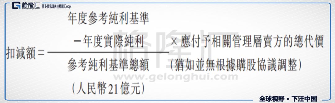 若管理层当年度没有完成相关业绩承诺,则当期原先应拿到的分期金额减去上述公式厘定的扣减额,然后再给予管理层。