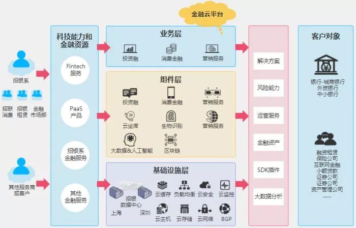 产品与服务上,招银云创主要提供金融业务云,金融基础云,以及相关的专项资讯与服务,试图解决“如何把成本从50块降低到5块”的问题。