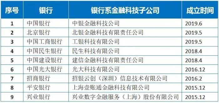 在此之前的是2015年12月兴业银行成立的兴业数字金融服务(上海)股份有限公司,随后,平安集团成立了上海壹账通金融科技有限公司。