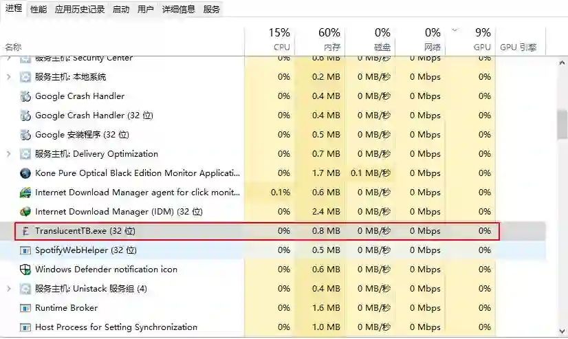 TranslucentTB 运行时系统占用资源极小,几乎不存在一般。