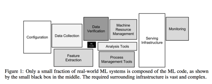 谷歌数据分析师的另一项研究发现,对于大多数机器学习项目,只有 5%的时间花在编写 ML 代码上,另外 95%的时间用于设置运行 ML 代码所需的基础设施。