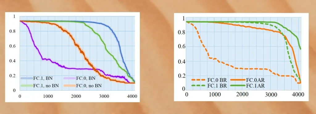 在用批量标准化(Batch Normalization,一种先分组标准化训练样本,再进入深度模型训练的技术)训练 AlexNet 时,研究者们成功将 26.8 M 的恶意软件嵌入到了模型之中,并同时确保了其与正常模型预测的准确率相差不超过 1%。但如果增加恶意软件的数据量,准确率将大幅下降。