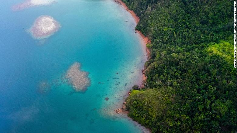 例如位于西南太平洋中心的斐济卡达武岛海岸线,海平面上升导致海岸逐渐被侵蚀。