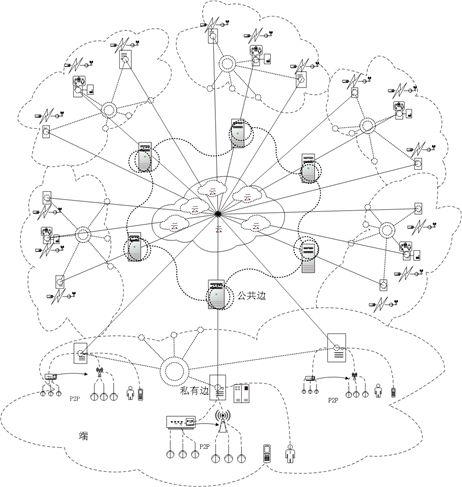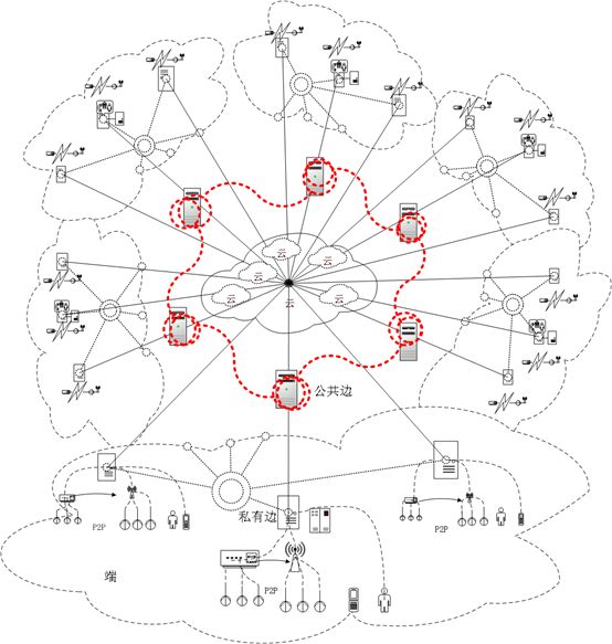 边缘计算的架构包含了从最靠近物的终端传感器到云端的数据中心的整个网络架构,作为云计算的补充,有必要先了解云计算的基本架构S/C,即服务器到客户端的二元结构。以服务为中心的云计算结构是终端采集数据上传到云端,云端保存所有数据,根据业务逻辑,调用云端服务计算结果,然后回传给终端。简单地理解为云计算补充边缘计算之后的架构,即“化二为三”,也就是在终端到云端的网络路径种增加一个中间环节,这个中间环节在终端的角度看来是将云端的能力下沉,完成了之前云端对于终端的部分功能,比如数据处理和数据缓存等;在云端看来,中间环节上传上来的数据量不再是海量的异构数据,而是经过预处理后的规格化数据,可以节省网络带宽和计算资源,同时中间环节会接受云端的管理和更新设置。
