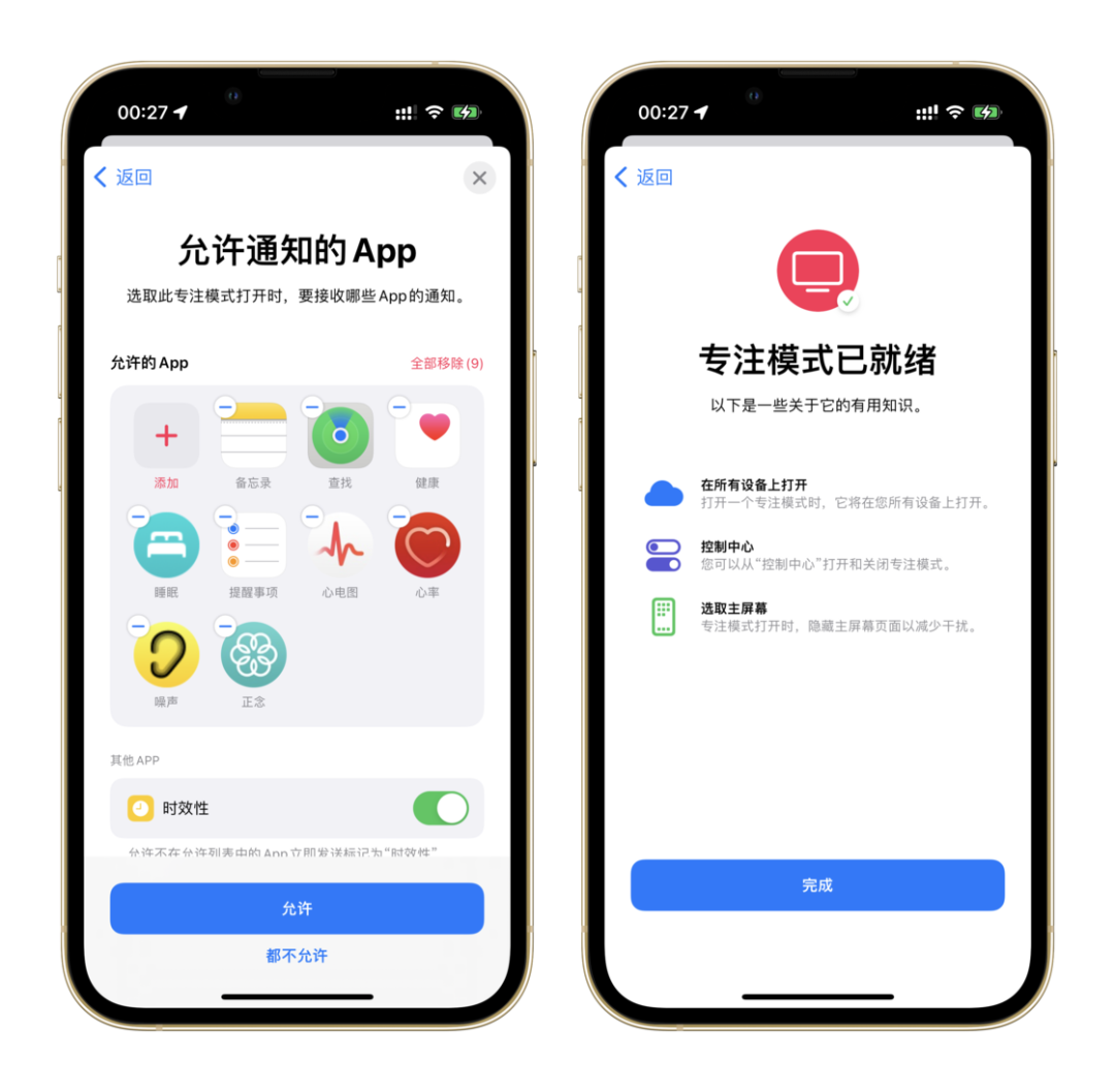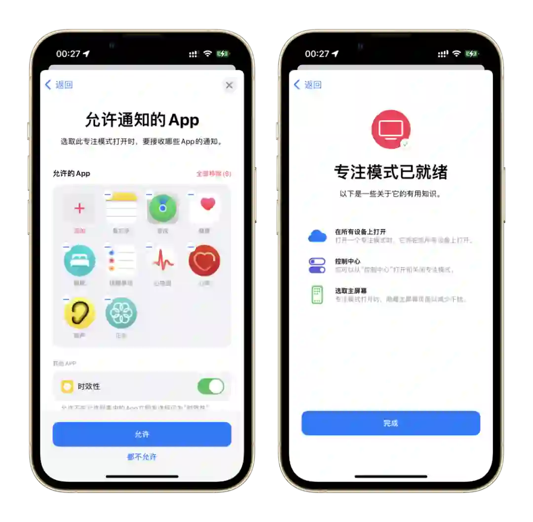 完成通知设定后,点击允许,写稿专注模式就添加完成了。