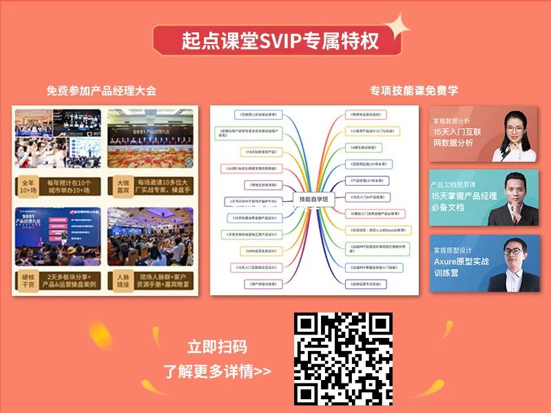 起点课堂会员是一个旨在帮助产品人、运营人突破职场发展瓶颈,完成成长进阶的系统化学习方案,在这里不仅有海量可复用的大厂实战技能,还有丰富的学习资料和干货,为你的升职加薪保驾护航!