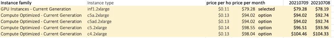 我们使用 AWS On-Demand 和 Spot 实例的组合来运行在 8 个 CPU 和 16GB 内存上运行的应用程序。然后我们决定用 CAST AI 来检查配置是否需要优化。这个平台推荐迁移到 INF1 的 Spot 实例。不过,这不是一个昂贵的、ML 专门的 GPU 实例吗?事实证明,当时那个实例实际上比我们使用的通用计算实例便宜。如果没有自动化,我们就会失去这个隐藏的宝藏。