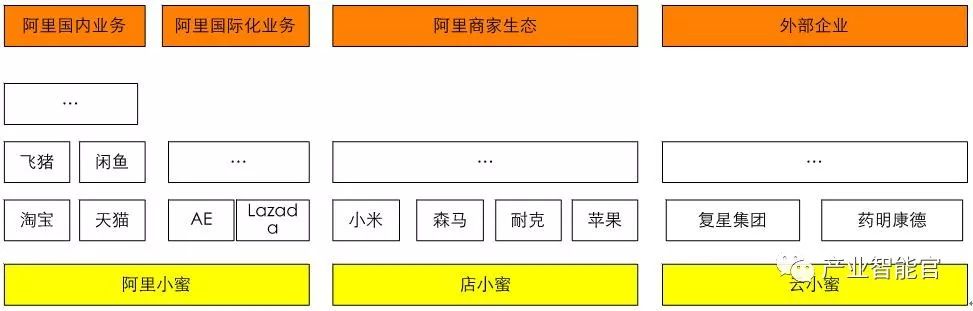 随着阿里小蜜的成功,将智能服务能力赋能给阿里生态圈商家及阿里生态之外的企业和政府部门,便成了必然的路径。店小蜜主要赋能阿里生态中的商家,云小蜜则面向阿里之外的大中小企业、政府等。整个小蜜家族如图19所示。