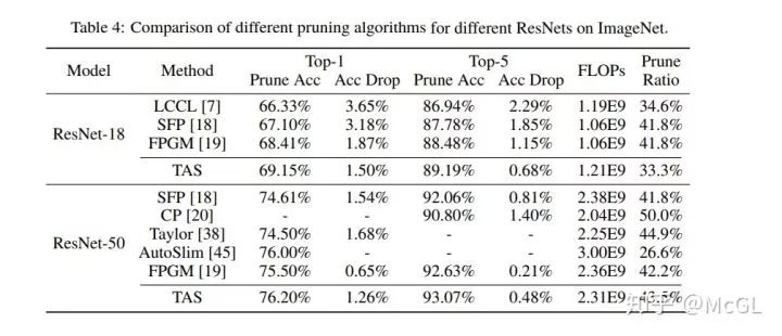 下面是 ImageNet 上不同 ResNets 的不同剪枝算法的比较:
