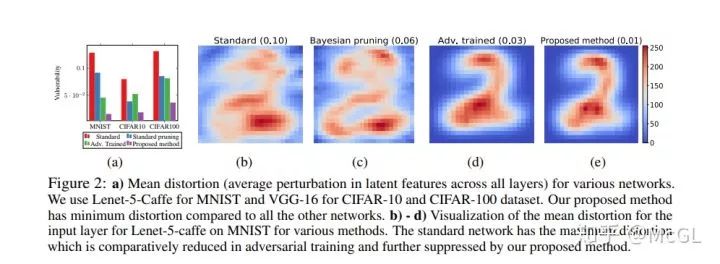 本论文研究了网络潜在特征在对抗性扰动下的畸变(distortion)问题。 该方法通过学习贝叶斯剪枝mask来抑制较高畸变的特征,从而最大化对抗方差的鲁棒性。
