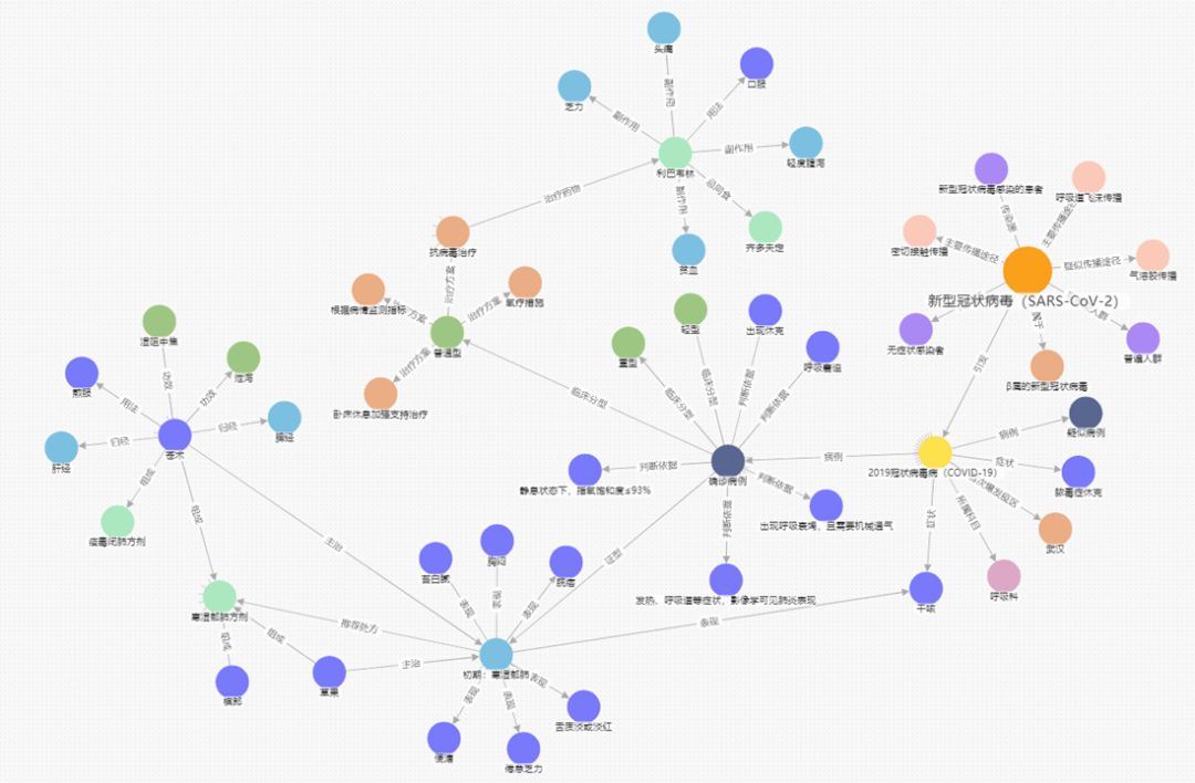 新冠健康图谱由清华大学和北京妙医佳健康科技联合构建,包含跟新冠肺炎相关的各类疾病、药物、症状、检查、全国各地接收新冠肺炎定点医院等信息。