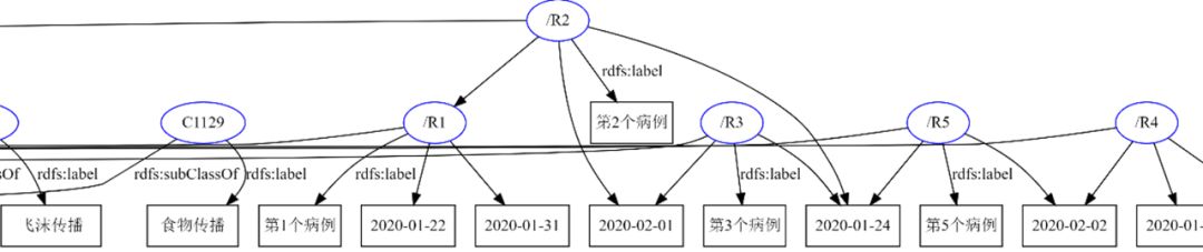 为了进一步表示COVID-19和宿主的关系,我们使用host表示,目前图谱中的宿主实体主要是human和vertebrates。