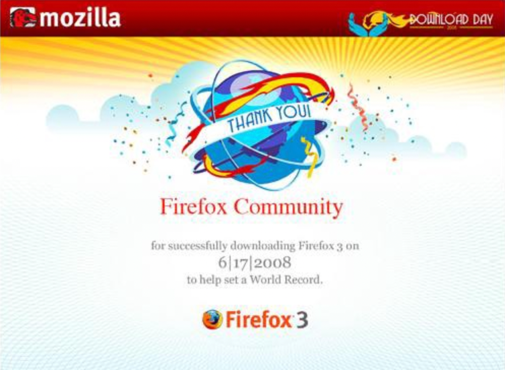 2008年6月17日,第三版Firefox正式发布,并以24小时800万次的单日下载次数创下了世界纪录,并刷新了当时无人能及的吉尼斯世界纪录。