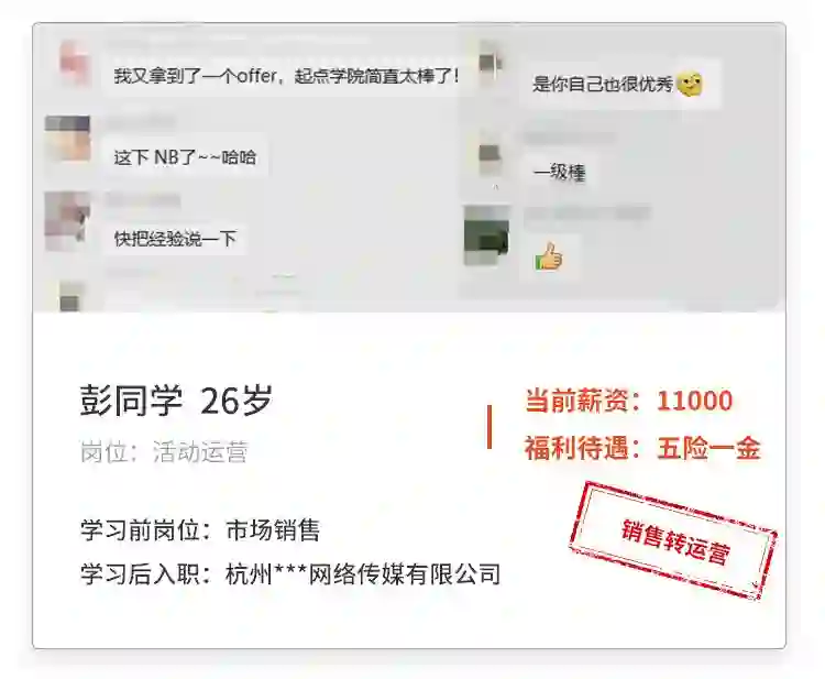 如果想了解更多你能够得到的收获,可以接着往下看哦~我们将一一告诉你,课程是如何帮助你成功转行、并且转行后的薪资远超同类标准,进入到更高level的公司