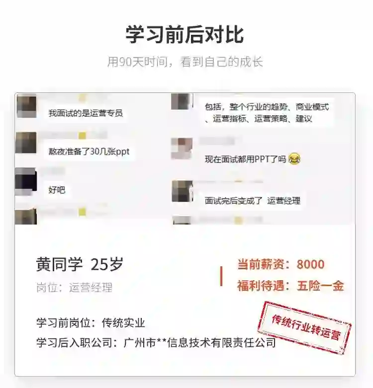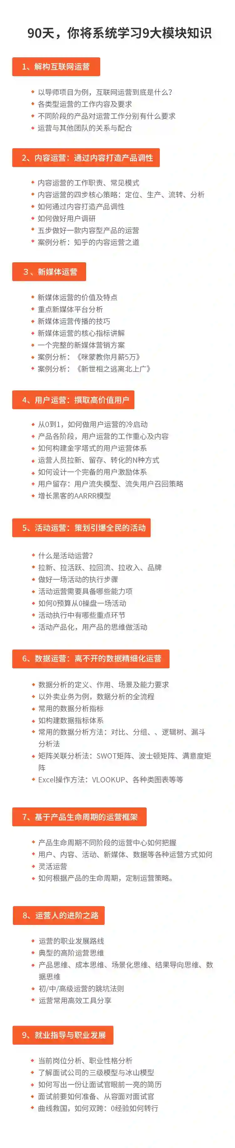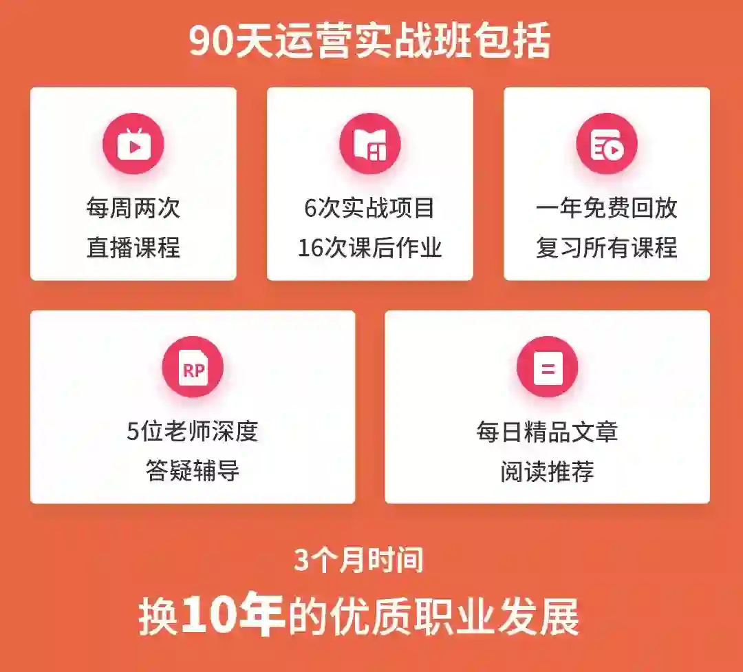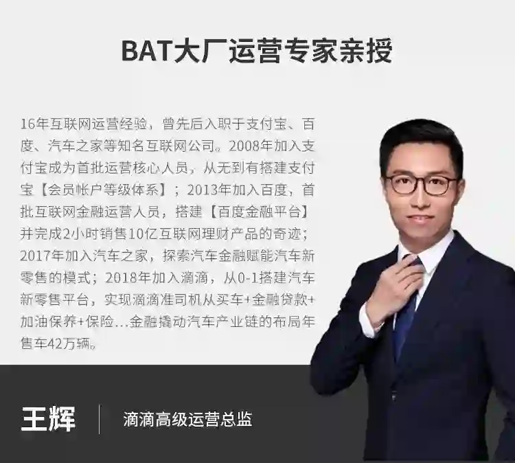 更是梳理了导师们在大厂的经典案例,更会输出大厂规范的运营方法论,课程内容完全还原运营真实工作,转岗面试更有底气
