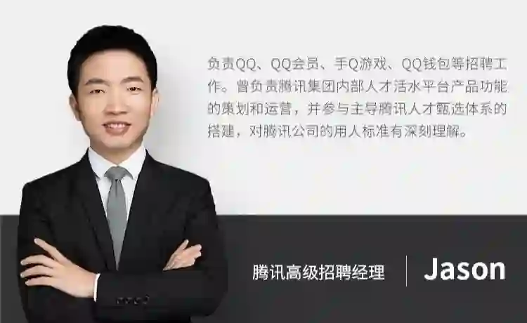 Jason老师,曾参与主导腾讯人才甄选体系的搭建,是腾讯《行为面试法》公司级认证讲师,让你明确自己在互联网行业中的能力定位