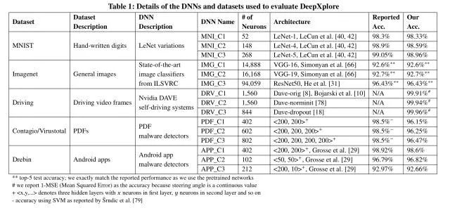 DeepXplore在 3个 DNN上进行了测试,每个 DNN又有 5个不同的数据集。